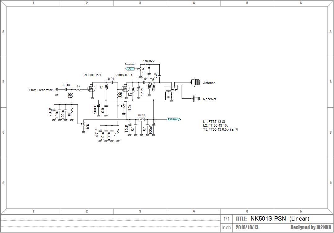 ファイナルをドライブするため100mW程度に増幅する必要がある。三菱の高周波パワーFETRD00HHS1を使用している。アイドリングは50mA